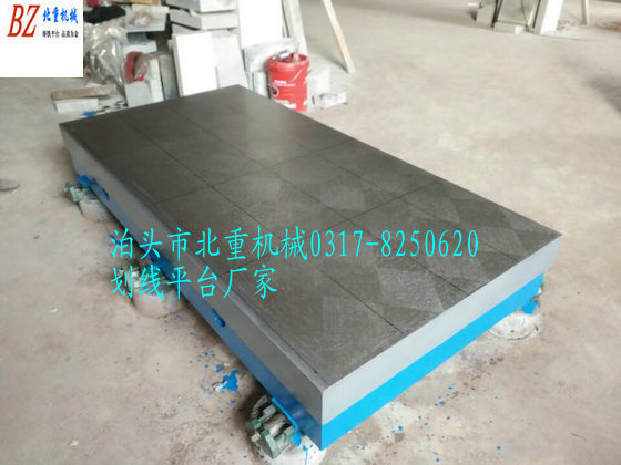 T型槽劃線平臺材質(zhì):高強度鑄鐵HT200-300工作面硬度為HB170-240,經(jīng)過兩次人工處理(人工退火600度-700度和自然時效2-3年)使用該產(chǎn)品的精度穩(wěn)定,耐磨性能好?!?/p>