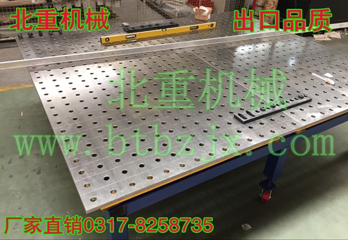 3、精確性:柔性焊接平臺再2噸左右1M2集中載荷的作用下,其變形量不超過0.50mm,而再均布載荷作用下,其變形量只有0.024mm,完全可以滿足絕大多數(shù)的焊接及裝配加工的需要,其組建的精度高,工作平臺定位孔中心公差保證在0.05mm以內(nèi)。這種高精度將會反映在用戶所加工的產(chǎn)品中,因此此工作臺也可用作檢具的基準平臺。