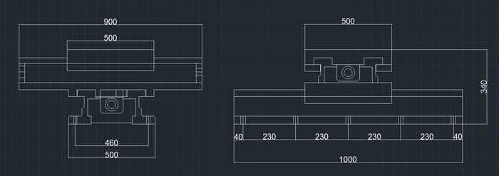 此規(guī)格SZYG500滑臺(tái),移動(dòng)工作臺(tái)規(guī)格為500*500mm,上行程400mm,下行程500mm,使用角接觸軸承和滾珠絲桿組裝。